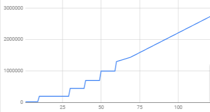 rank10で20万、30で40万、50で70万、50で100万、60で130万ぐらいかなーって目安です。